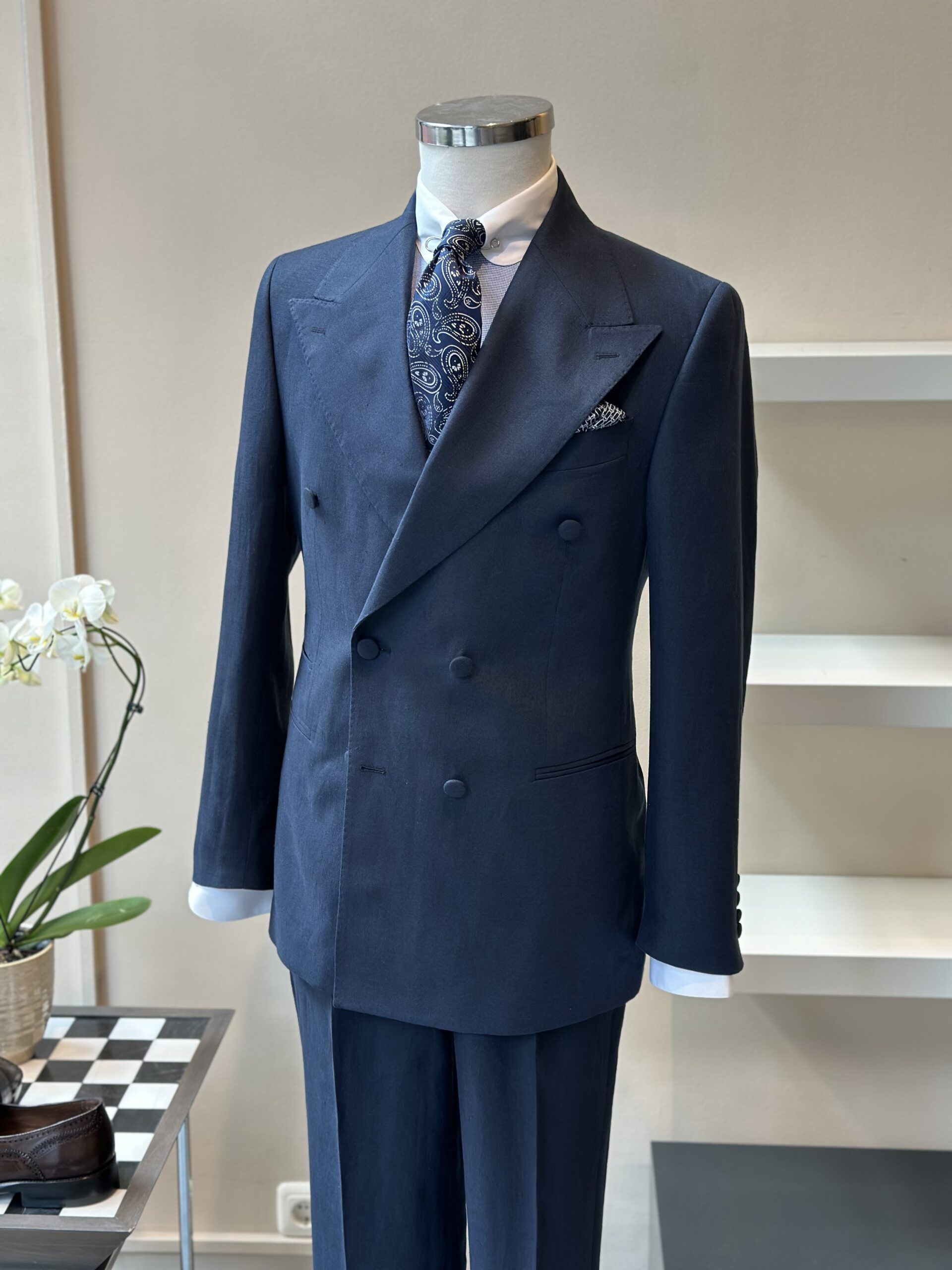 Herren Doppelreiher Leinenanzug, bestehend aus Sakko und Hose