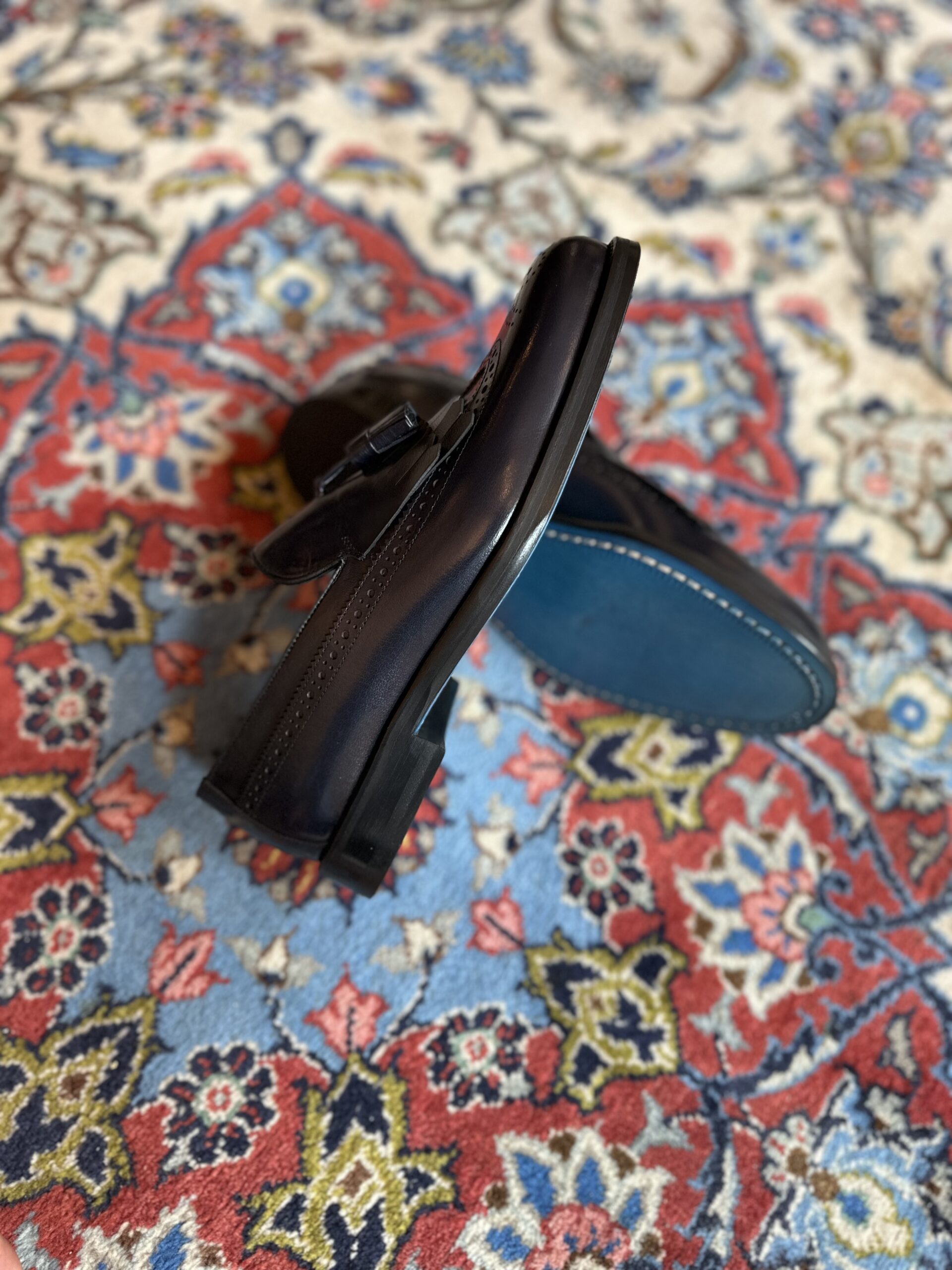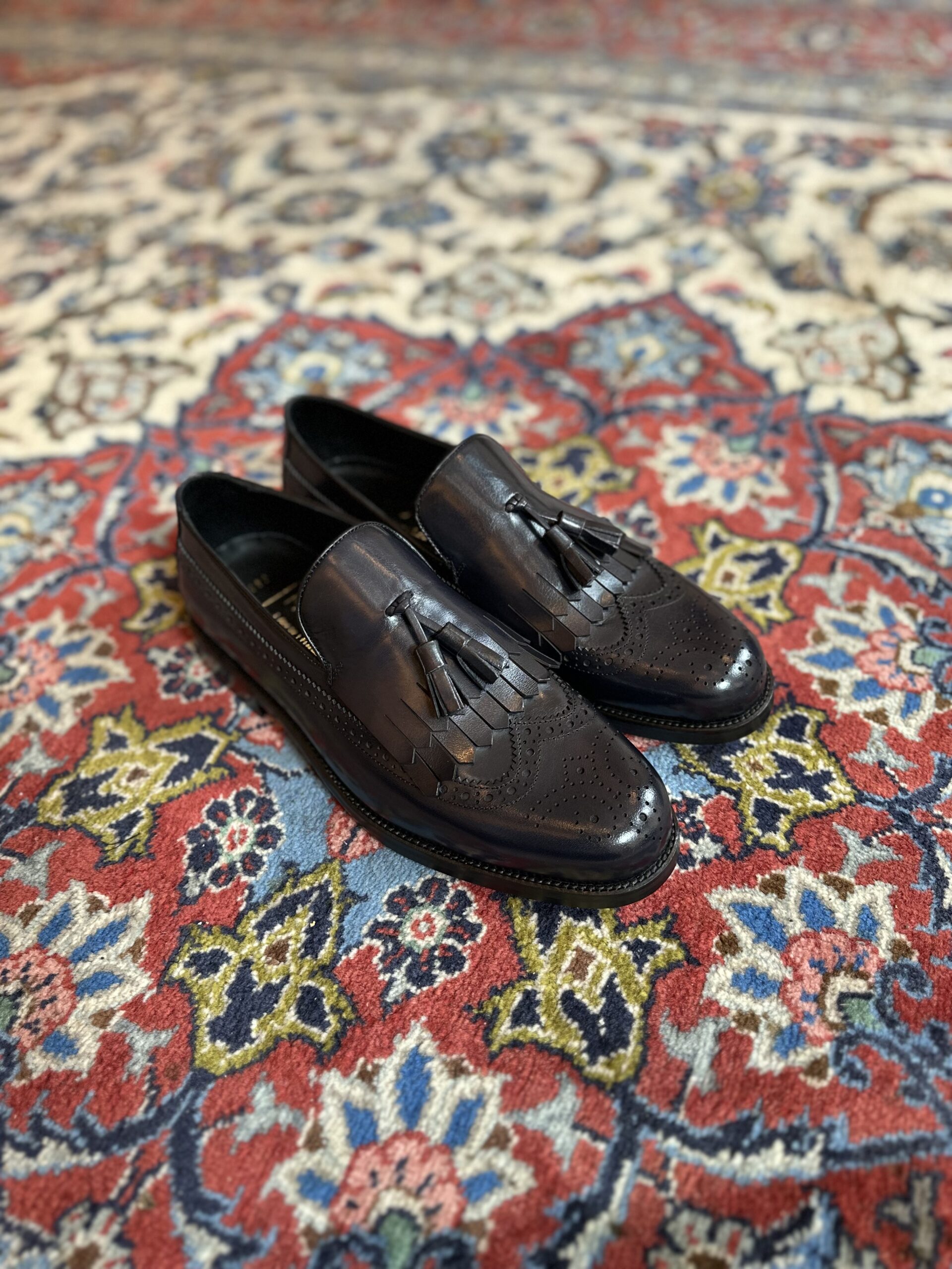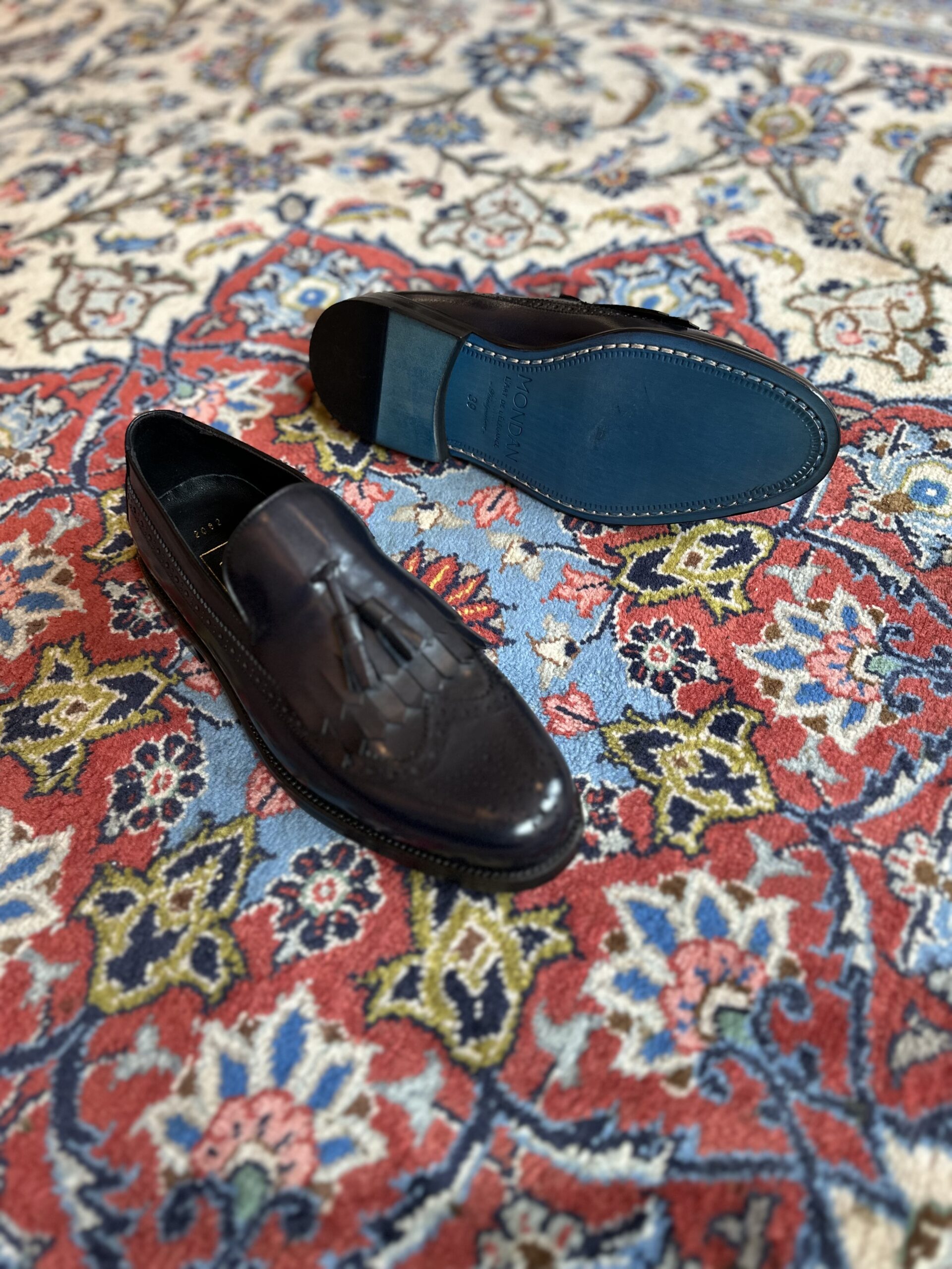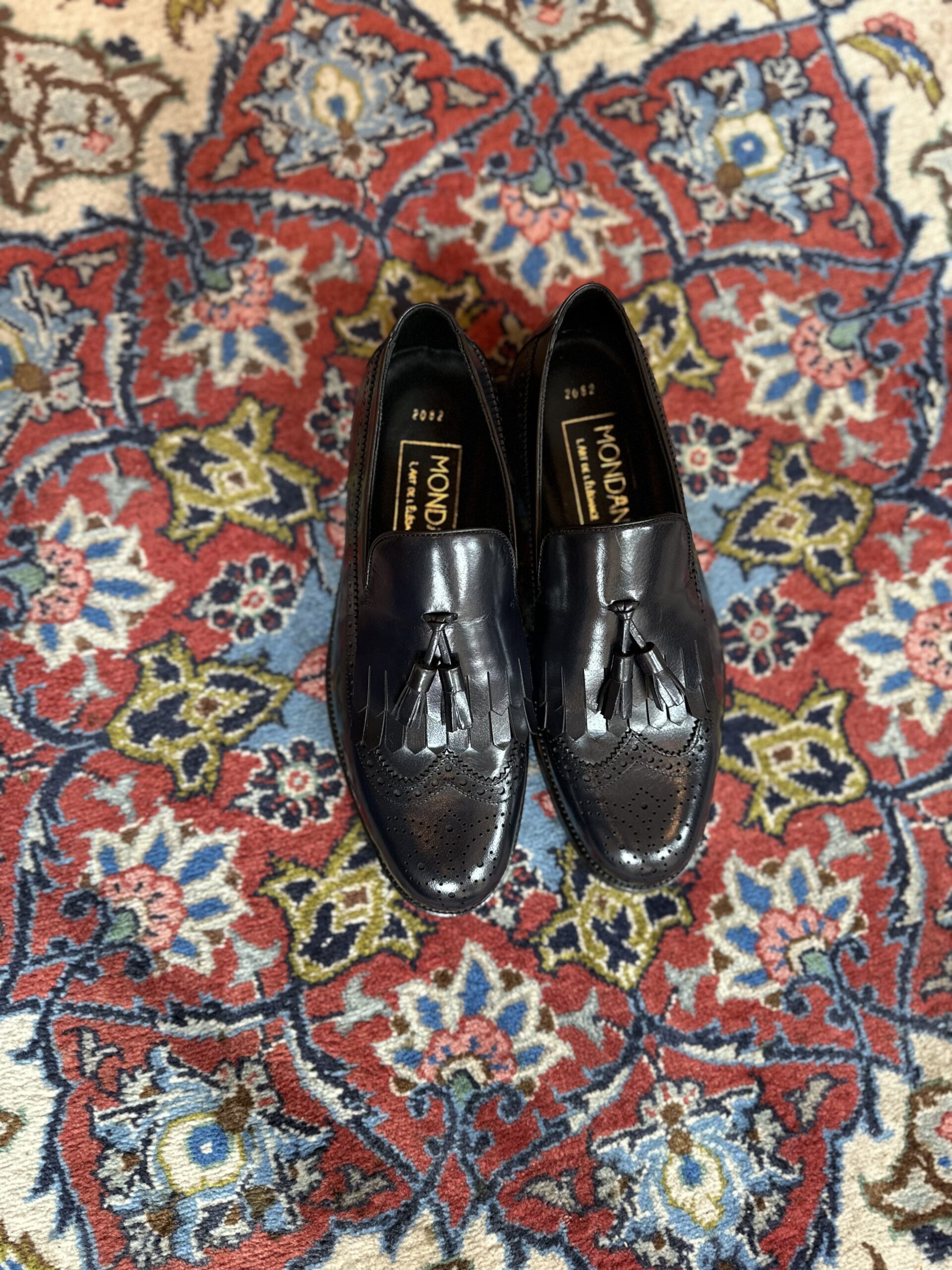 Die Herrenschuhe vom Hause MONDÄN – L’Art de l’Élégance werden von versierten Händen aus edlen sorgfältig ausgewählten Materialien mit einzigartiger Design- bzw. Formsprache gefertigt. Passion zum Detail und handwerkliche Qualität stehen im Vordergrund. Das handgearbeitete Modell “BLUE PANTHER” ist mit Fransen, Bommel und edle Brogue-Details versehen.